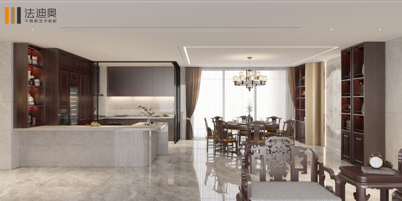| - Dapur Cina: Baja Tahan Karat Alami: Sesuai dengan estetika modern dan menawarkan manfaat praktis. Fitur Lemari | Dapur Cina: Pintu Kaca: Menawarkan pembagian ruang yang serbaguna, memungkinkan penciptaan dua area memasak yang berbeda. |