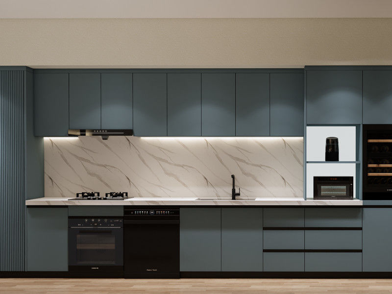 | Peralatan Terintegrasi | Dapur dilengkapi dengan peralatan terintegrasi yang terpasang mulus ke dalam lemari, menjaga tampilan yang ramping |