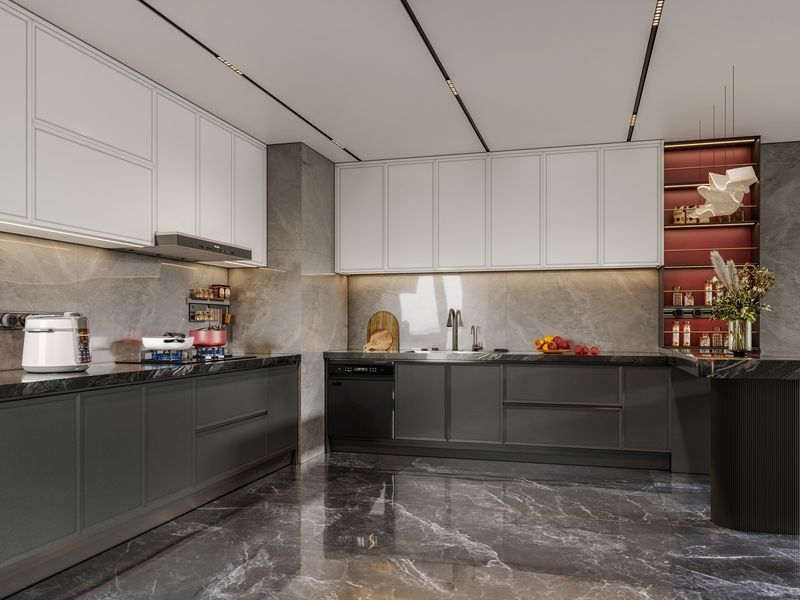 | Pencahayaan | Opsi pencahayaan terpasang tersedia untuk meningkatkan fungsionalitas dapur dan menyoroti elemen desain utama |