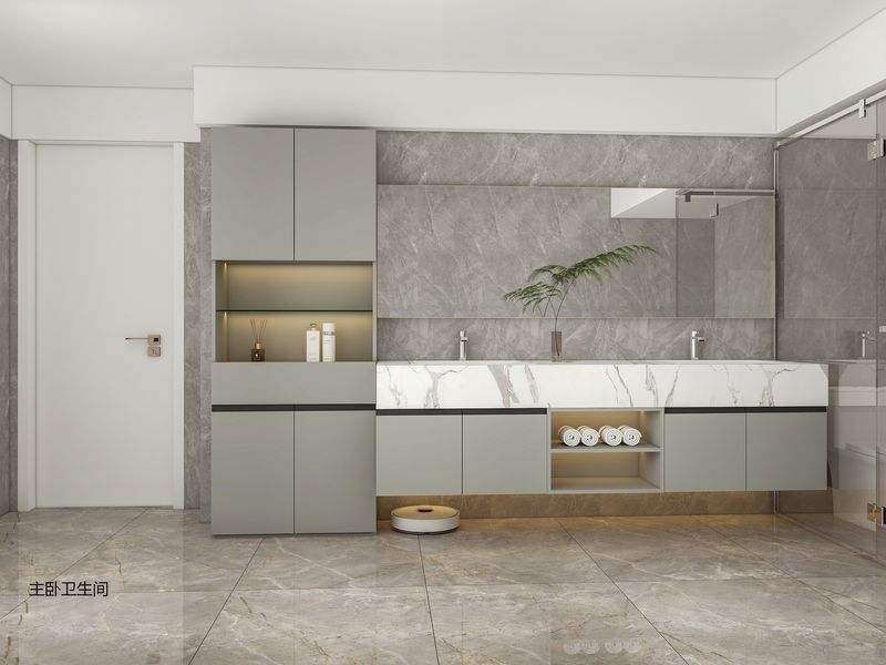 Lemari kamar mandi ini disajikan sebagai sistem yang dipimpin desain daripada SKU generik. Lemari ini menggunakan struktur kabinet Abu-abu bersama dengan Baja Tahan Karat untuk menciptakan identitas visual yang lebih terpecahkan untuk proyek residensial premium.