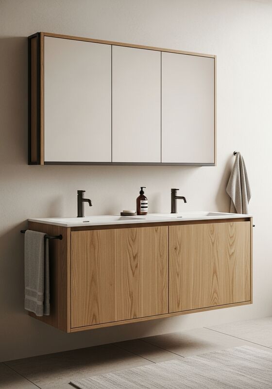 Fadior memposisikan lemari kamar mandi ini sebagai solusi tingkat proyek yang dibangun di sekitar 304 badan struktural baja tahan karat kelas makanan; veneer oak Jepang alami (butir lurus, mat minyak);Panel baja berlapis bubuk kulit putih yang hangat; rangka aksen besi hitam yang ditempa tangan, butir lurus, nada madu hangat, permukaan mat minyak, pola butir terlihat tetapi terkendali,dan marmer diasah atau batu sinter atas untuk kamar mandi master kesombongan untuk ruang hunian mencari ketenangan, lingkungan pagi berorientasi ritual; cocok untuk arsitek dan desainer yang menentukan japandi atau interior hangat-minimal.Spesifikasi ini berfokus pada 304 stainless steel core dengan panel depan veneer oak Jepang alami, warna madu yang hangat, lapisan matte yang dicelupkan minyak, penyimpanan atas yang dilapisi bubuk kulit putih yang hangat dengan permukaan datar kulit telurdan pembeli proyek dapat menilai, selesai, dan logika pengiriman dengan kurang menebak.