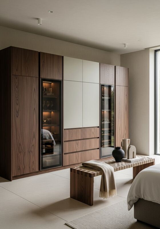 | Warna | Kacang kenari gelap (panas tengah gelap dengan nada merah halus) sebagai permukaan utama; kaşmir taupe (panas netral antara pasir dan jamur) untuk modul aksen;perunggu asap (merah logam hangat) untuk warna kaca dan hardware; greige hangat (berwarna plester, sedikit merah muda hangat) sebagai netral sekunder untuk permukaan presentasi interior |